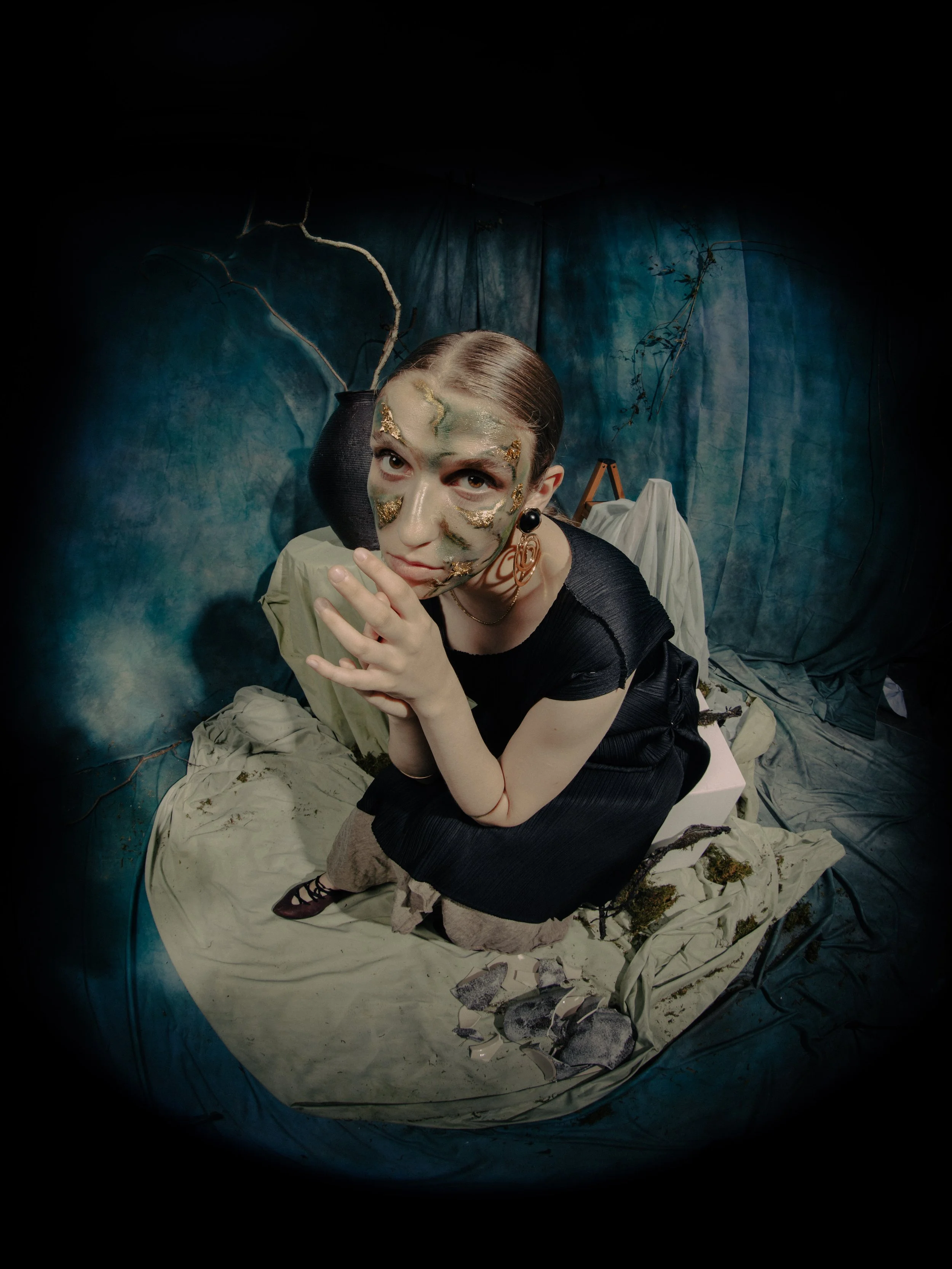 For this project, a fashion marketing student reached out to me to create the set design for Scad Manor Magazine. I experimented with fabric dyeing and combined thrifted antique materials with new ones I bought and handmade elements I crafted myself. The shoot turned out beautifully, and everything came together perfectly, and I was genuinely happy with how it all looked in the final photos.